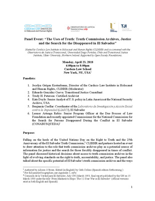 These rapporteur notes summarize key themes and discussions from The Uses of Truth, a convening co-hosted by the Cardozo Law Institute in Holocaust and Human Rights (CLIHHR), focusing on truth-telling, accountability, and justice in post-conflict societies. The document captures the perspectives of scholars, advocates, and practitioners exploring the legal, political, and moral dimensions of truth in human rights work.