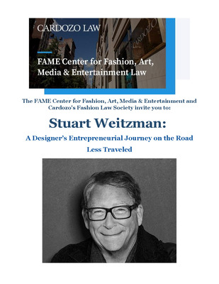 The Cardozo Fashion Law Society & FAME Center are thrilled to host a special event with Stuart Weitzman. In conversation with Professor Barbara Kolsun, Director of the FAME Center and the very first General Counsel of Stuart Weitzman, Stuart will walk us through his legendary career and the business and legal landscape behind his globally recognized namesake brand.