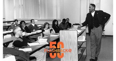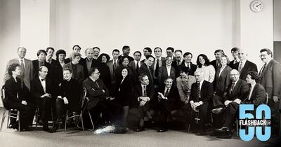 Flashback @ Fifty highlights historic photographs shared as part of Cardozo Law’s 50th anniversary celebration. This series documents people, events, and moments from across the law school’s history, offering a retrospective look at the growth and evolution of the Cardozo community since its founding.