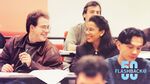 Cardozo Law students share a candid moment of conversation and laughter during class, captured in a vibrant snapshot of academic life. As part of the Flashback @ Fifty series, this image highlights the collaborative learning environment and lasting friendships formed inside the classroom.
